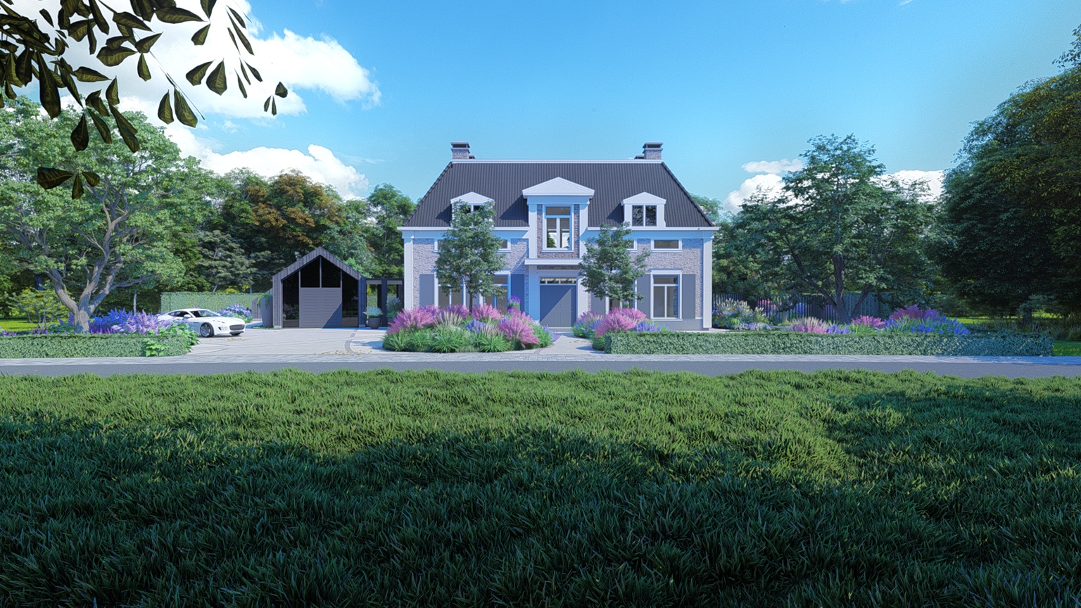 Doordat woning en tuin gelijktijdig worden ontworpen, hoef je niet te wachten op losse trajecten of opnieuw keuzes te maken. Je werkt direct toe naar één compleet plan waarin alle onderdelen samenkomen en op elkaar zijn afgestemd. Hierdoor heb je sneller duidelijkheid over het eindresultaat en verloopt het ontwerpproces efficiënter van eerste idee tot een volledig uitgewerkt ontwerp.